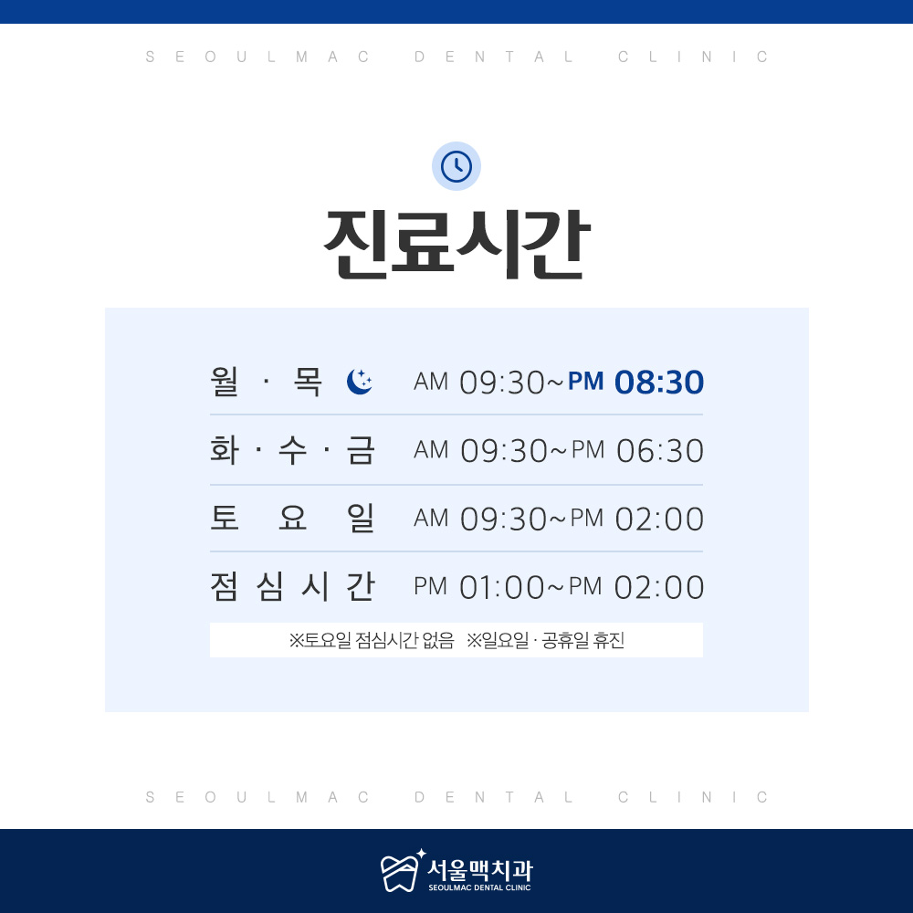 화 • 수 • 금 : AM 09:30 ~ PM 06:30