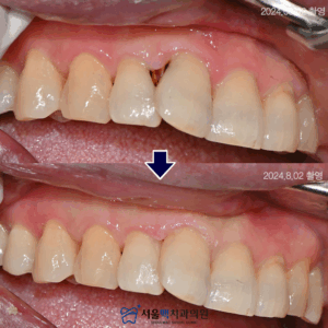 19. 등촌동치과 앞니에 생긴 치경부우식을 레진으로 심미성을 회복하기 위해!